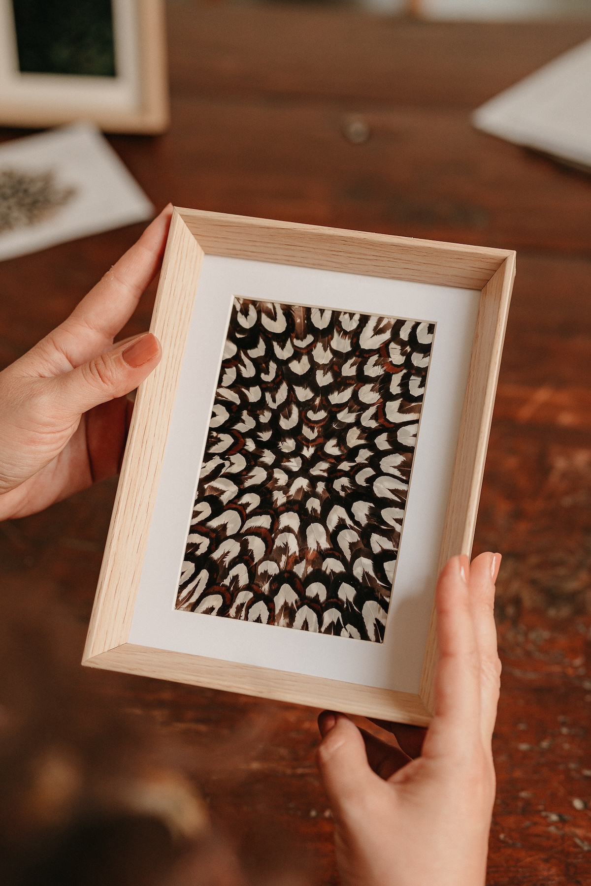 Créez un tableau décoratif unique en jouant avec les textures, les formes et les nuances des plumes naturelles.