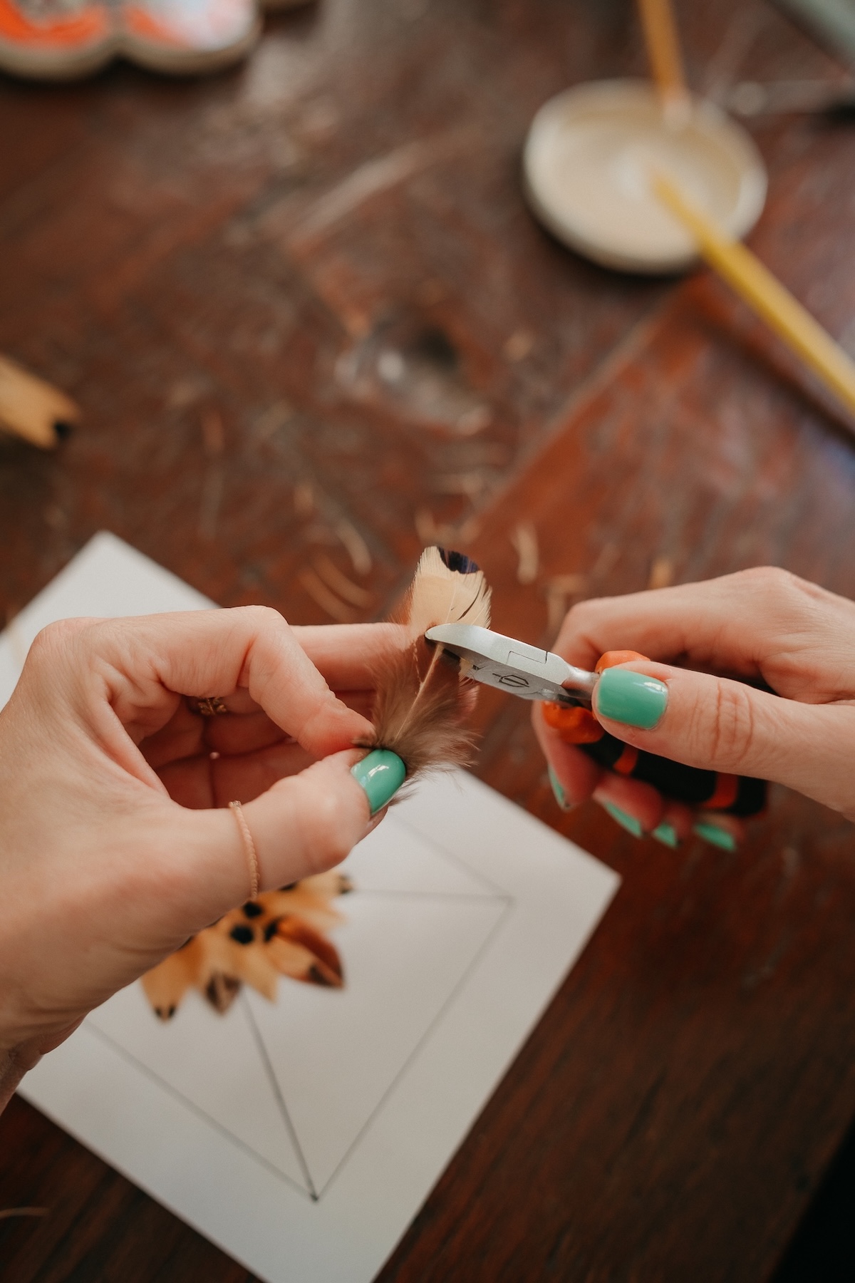Tout le matériel est fourni : plumes naturelles, supports, colles, outils, et toutes mes astuces pour jouer avec les textures, les formes et les couleurs. Vous repartez avec une création artistique prête à être accrochée chez vous ou offerte.