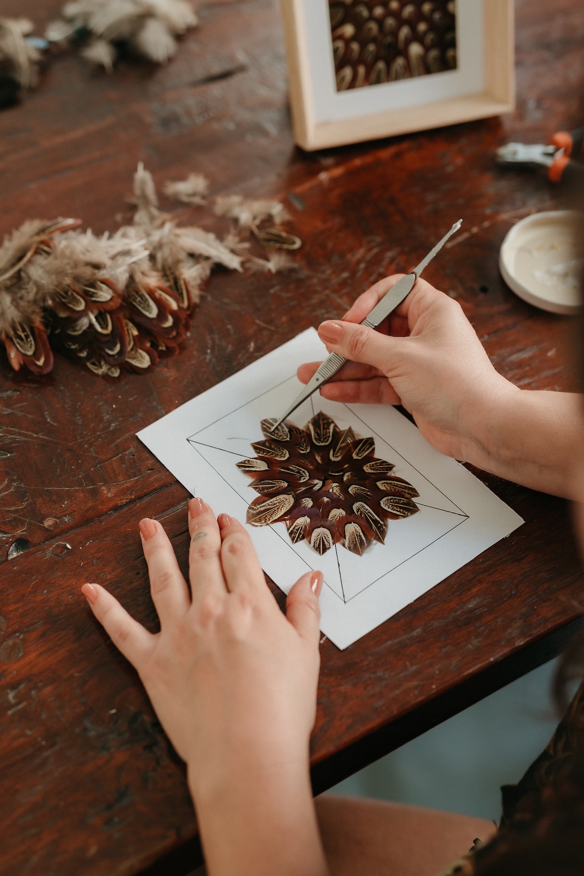 Créer un tableau en plumes, c’est bien plus qu’un simple atelier DIY : c’est apprendre un savoir-faire artisanal rare, composer votre univers visuel à partir de matières naturelles et vivre une vraie parenthèse inspirante, dans une ambiance douce et bienveillante.